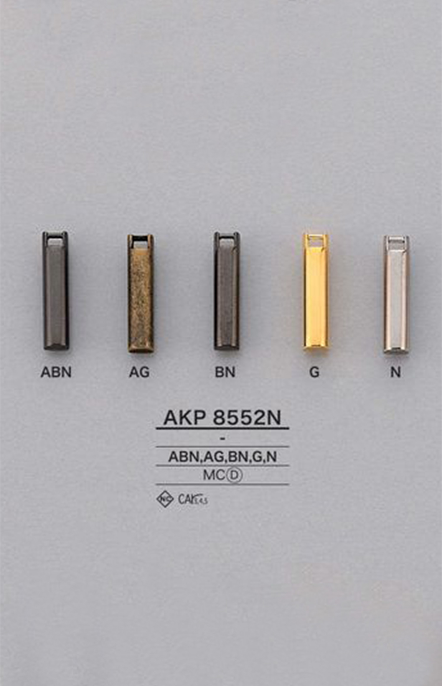 カラー:ABN(アンティックブラックニッケル)、AG(アンティックゴールド)、BN(ブラックニッケル)、G(ゴールド)、N(ニッケル) サイズ:全長22mm 幅5mm |
