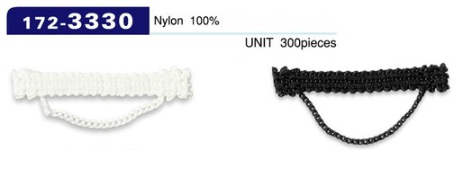 セッパ止め用に使用するチェーンタイプのルーパーです。縫製の省力化、縫代があり強度が保てます。程よい伸縮性があるのでレース等の取り外しボタンホールやリボン通しにオススメです。