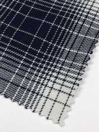 チーズインディゴをメインカラーにして、同系脱落反応染料のダークカラーをオンブレーに組んでおります。 中番手を使用しており、しっかりとした中肉感を持たせた商品です。