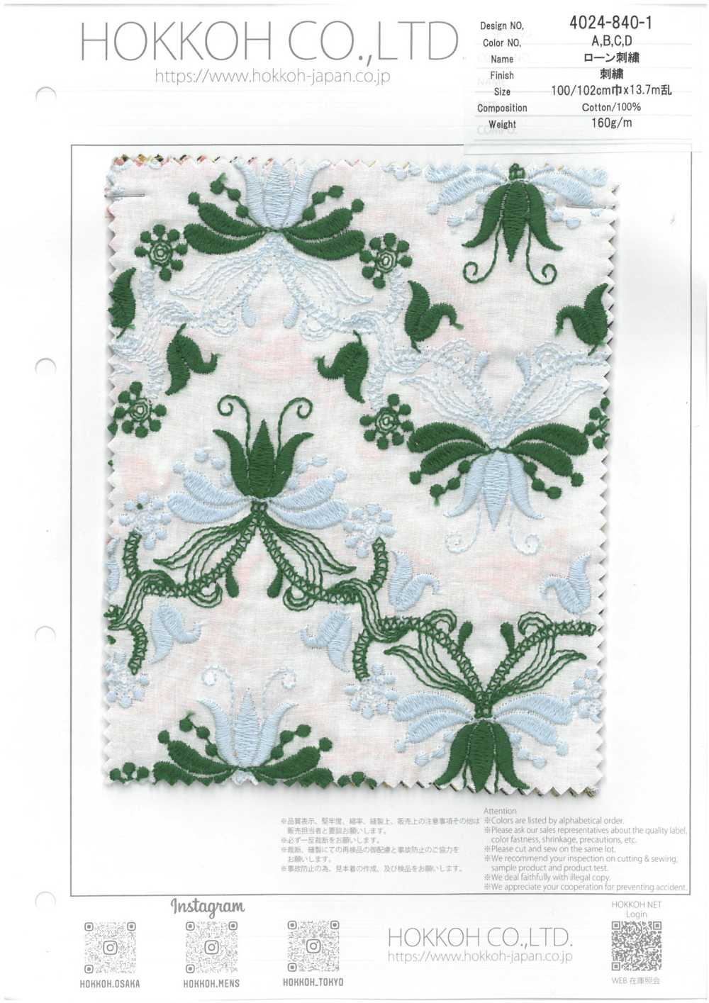 規則的なお花の模様のような刺繍を施したローン生地です。