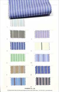 シャンブレーのストライプブロード生地です。BCIを通して綿を調達。Liquid ammonia加工でよりソフトで光沢感のある風合い。シャツやスカート、パンツにもおすすめです。