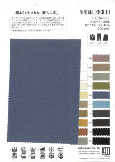 レーヨンの落ち感とナイロンの耐久性を融合させた、高機能ストレッチ素材です。