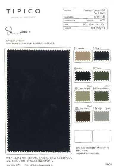 SPM-1136 スーピマコットン 60/2 ライトモールスキン